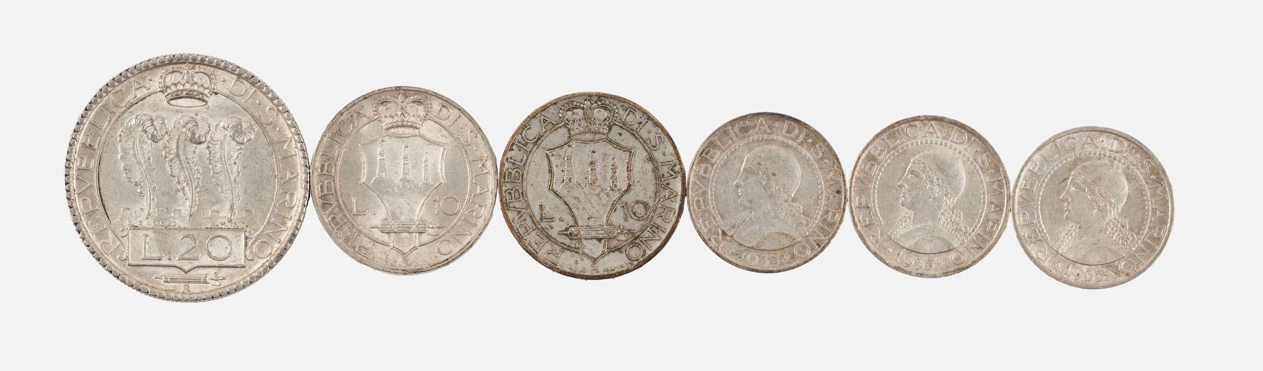 Lotto composto da: un 20 Lire 1935, 2 esemplari da 10 Lire 1932, un esemplare da [..]
