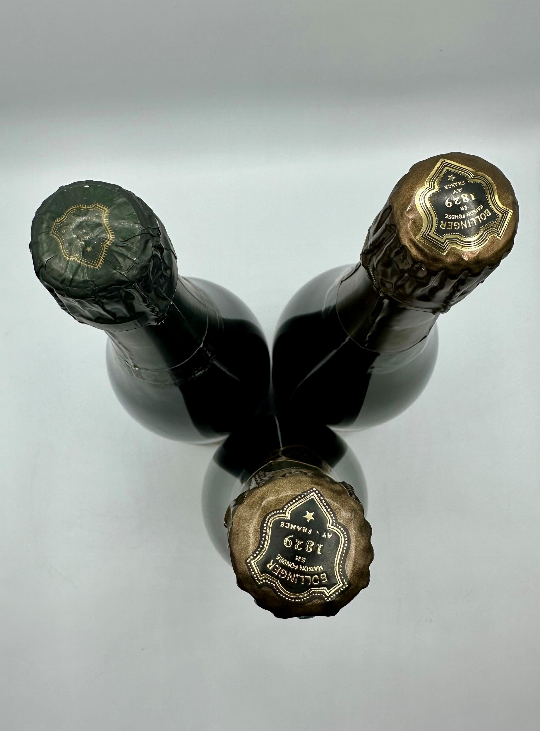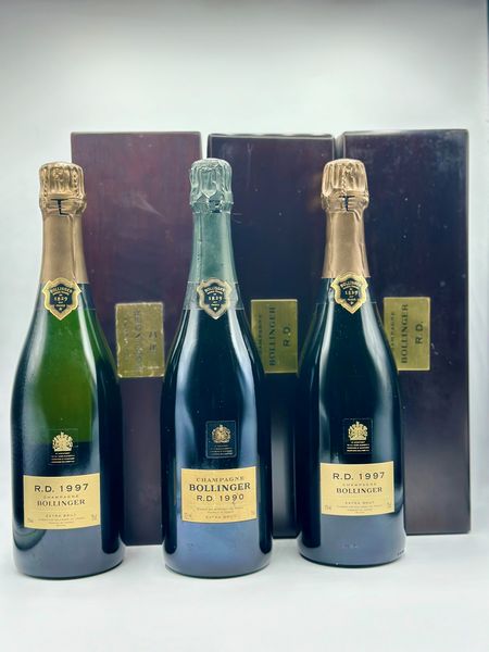 1990-1997 Francia, Champagne Brut - 3 bottiglie (bt) annate 1990, 1997.Livello: entro il collo (WN).Confezione: scatola originale (OC).Condition report: etichetta e capsula in ottime condizioni.