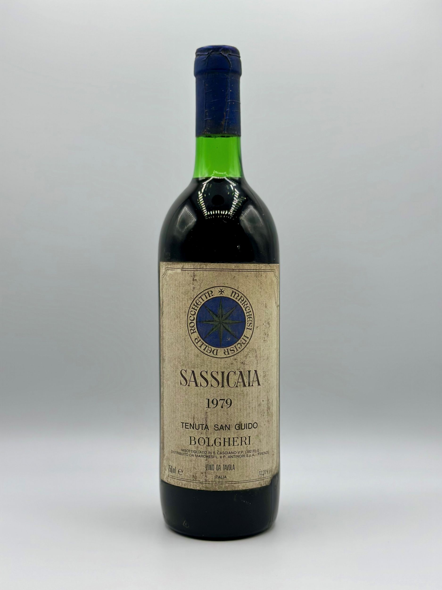1979 Toscana, Sassicaia DOC - 1 bottiglia (bt), annata 1979.Livello: collo inferiore (BN).Condition report: etichetta e capsula rovinate da usura del tempo .