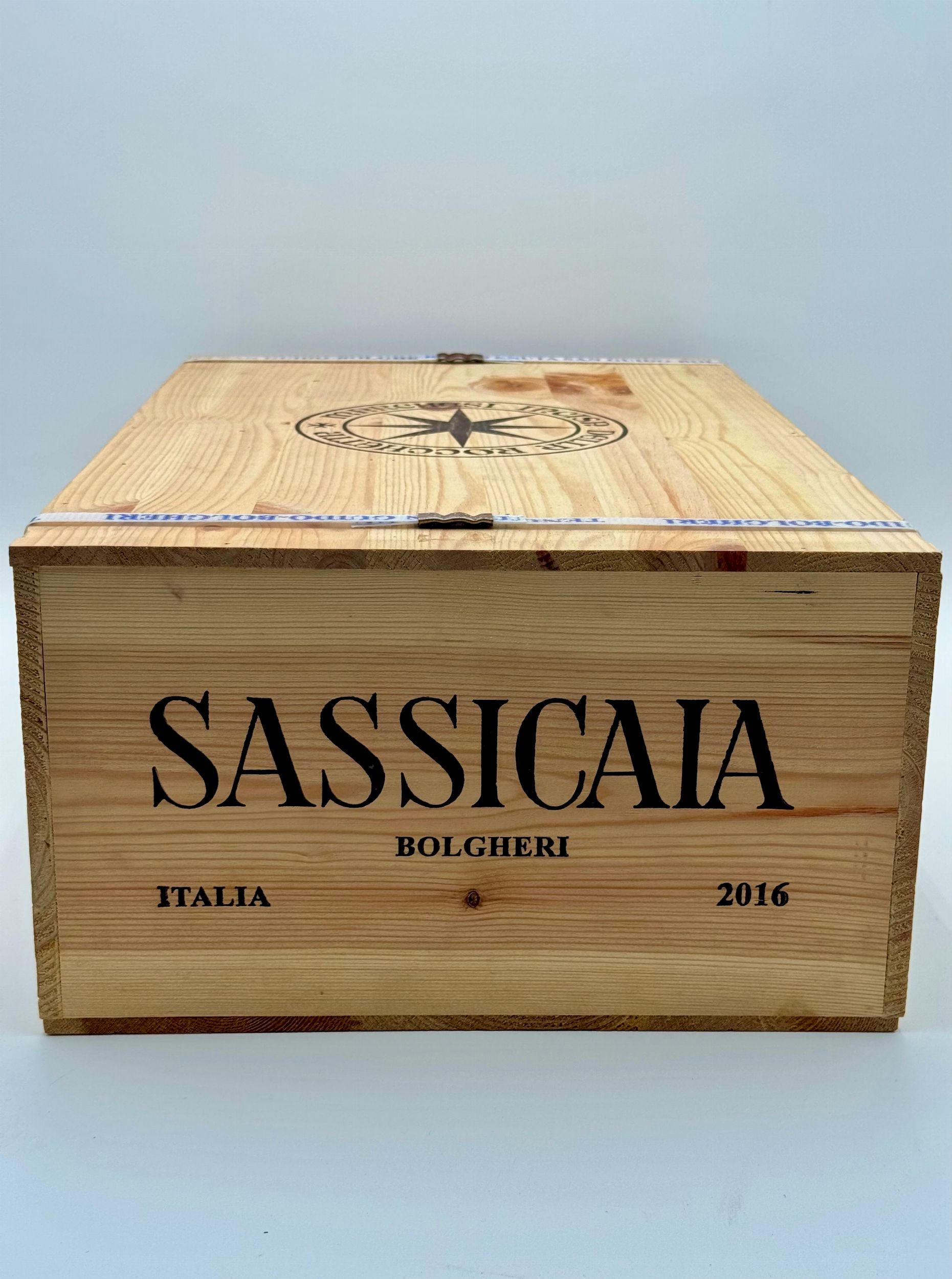Toscana, Sassicaia DOC - 12 bottiglie (bt), annata 2016.Livello: entro il collo (WN).Confezione: scatola di legno originale (OWC).Condition report: etichetta e capsula in perfette condizioni.