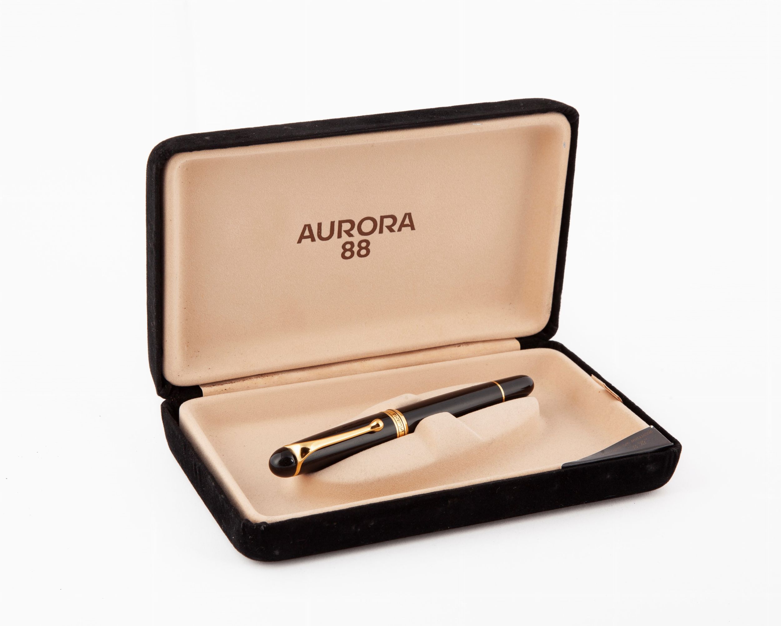 Aurora 88 - Penna stilografica in celluloide nera con particolari dorati