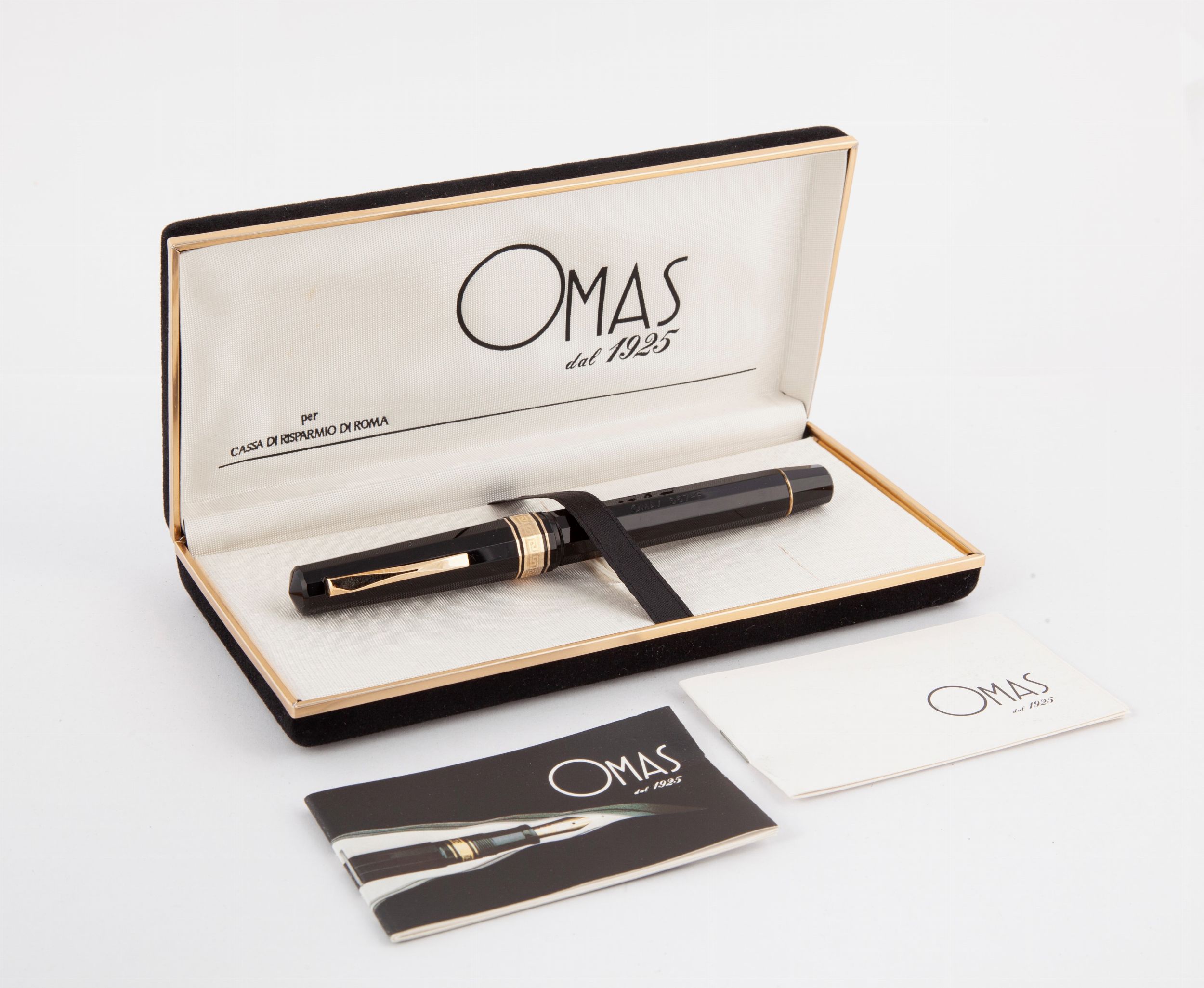 Omas 557 F - Penna stilografica a pistone in celluloide nera con particolari in [..]