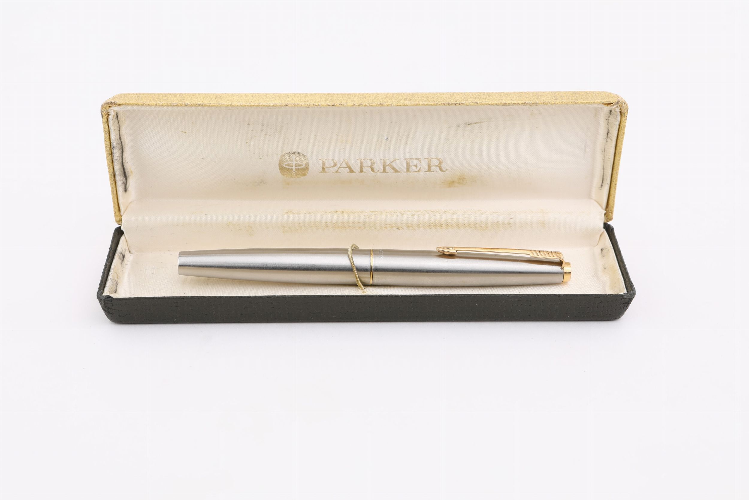 Parker - Penna stilografica vintage in acciaio e metallo dorato
