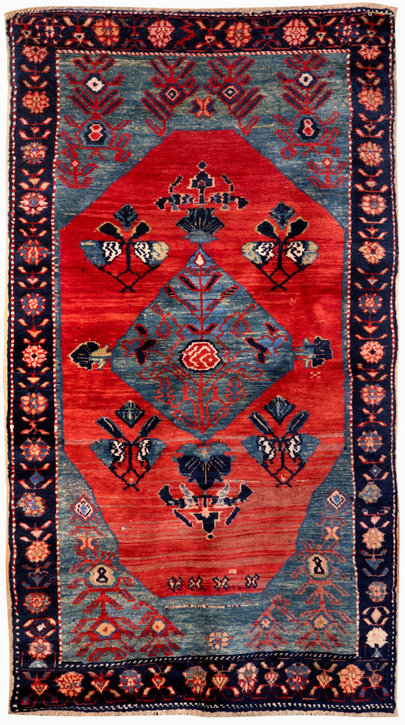 Tappeto afgano rosso corallo e azzurro, vecchia manifattura