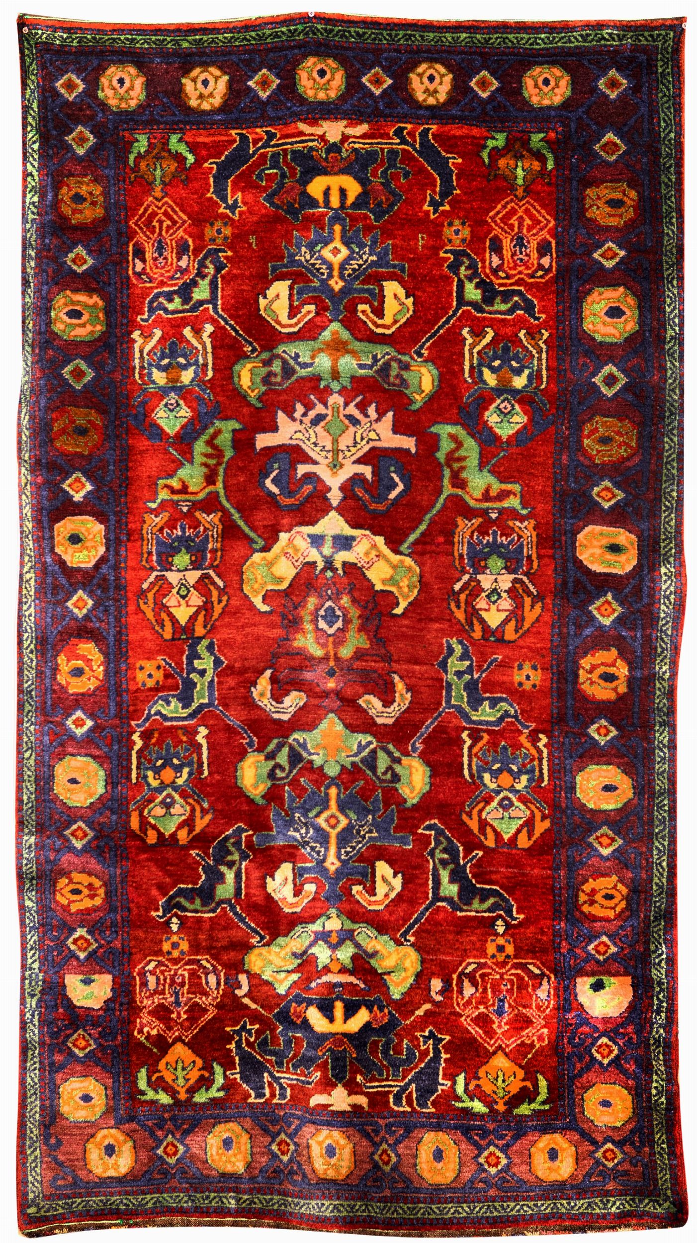disegno caratteristico multicolore; cornice principale a motivi geometrici