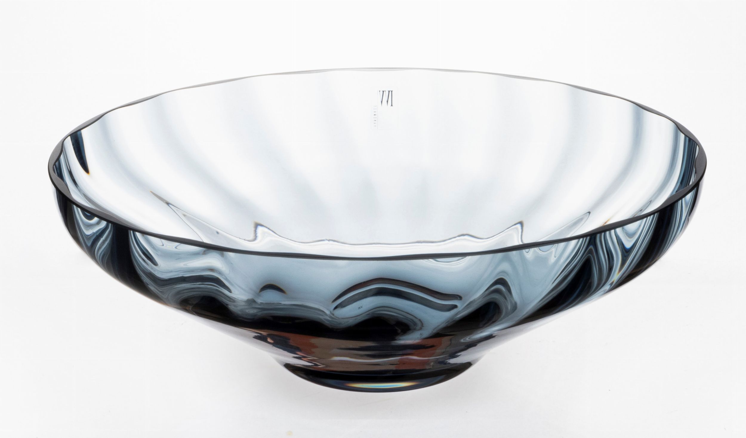 IVV (Industria Vetraria Valdarnese) centrotavola rotondo in vetro blu petrolio