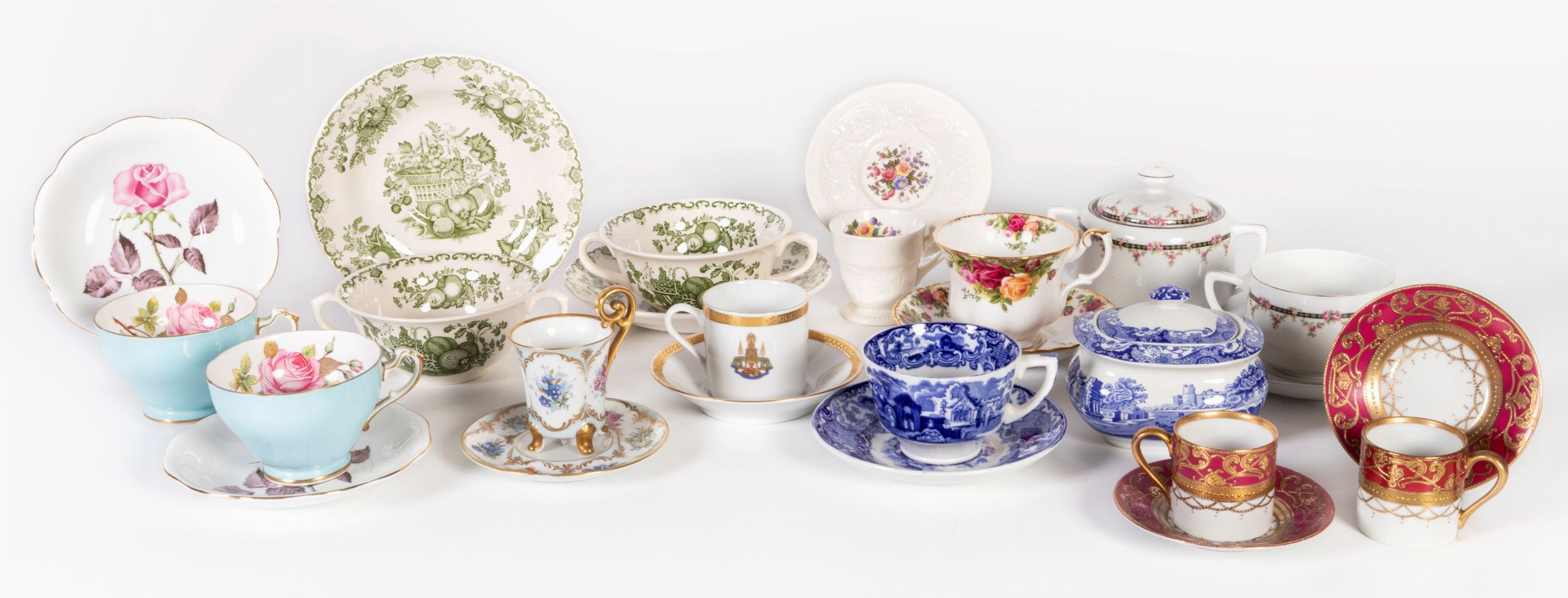 Lotto di dodici tazze e due zuccheriere in porcellana