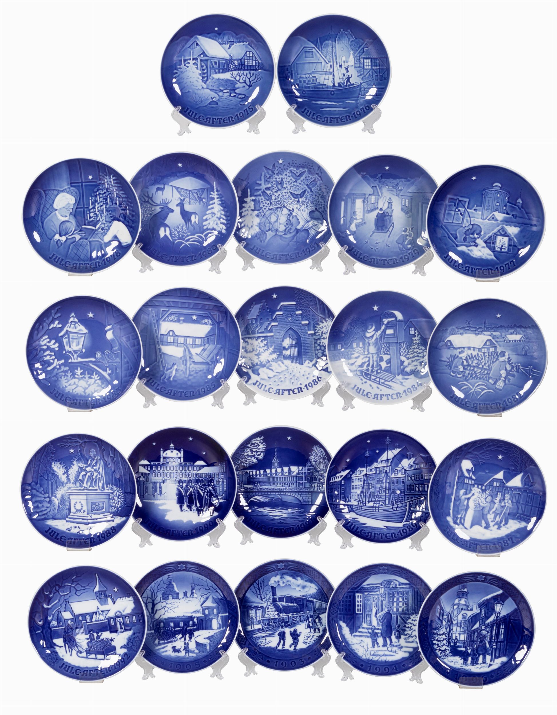 Ventidue piatti natalizi in porcellana bianco e blu