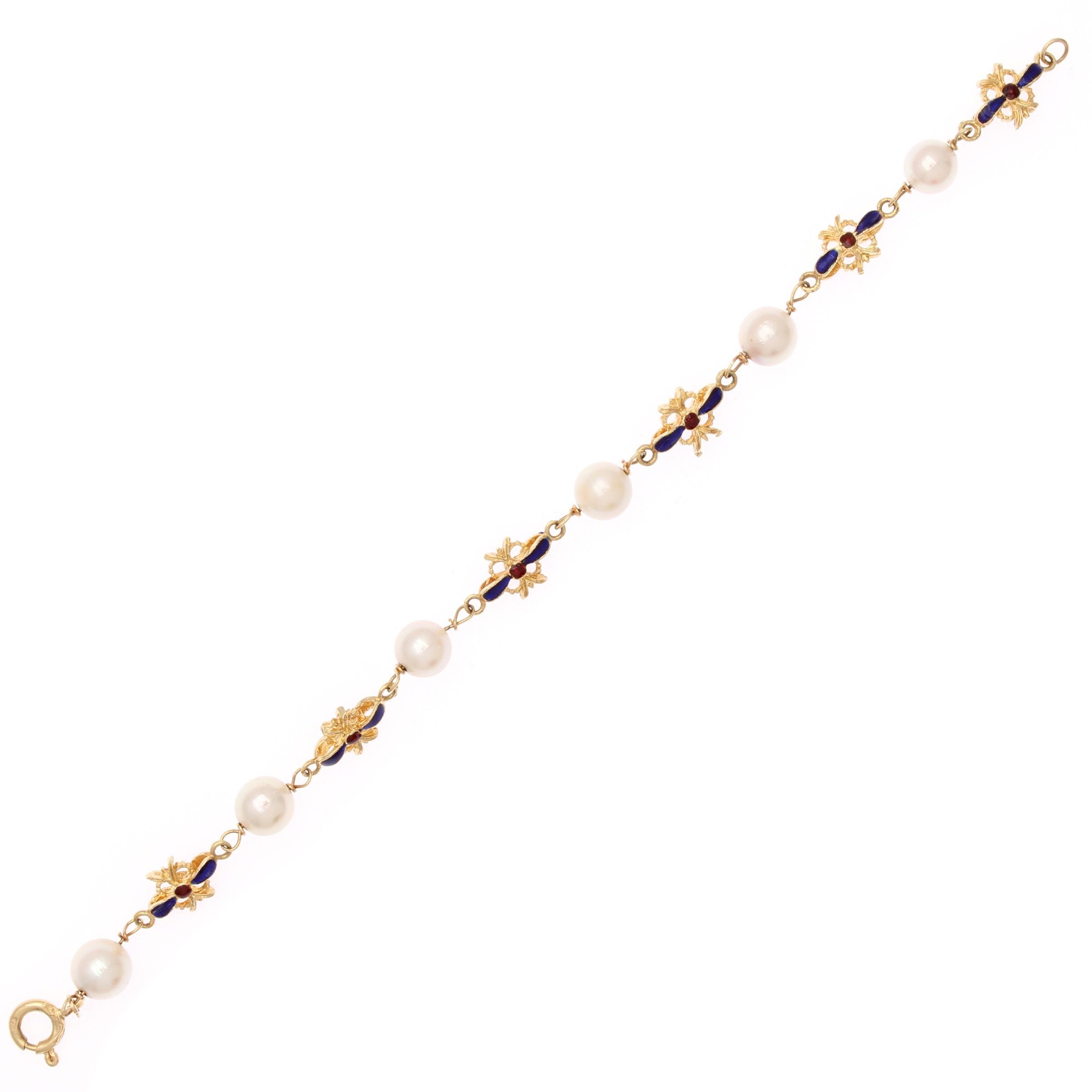 Bracciale in oro giallo 18kt, smalto e perle