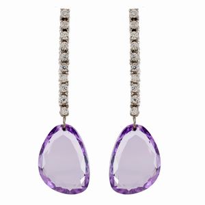 Orecchini pendenti in argento 925, ametiste e zirconi
