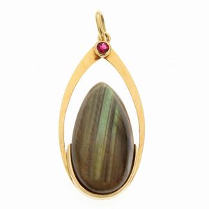 Pendente in oro giallo 18kt, ossidiana e rubino