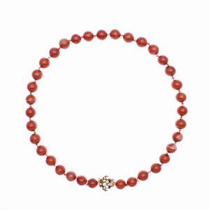 Collana ad un filo di diaspro e chiusura in metallo dorato e zirconi