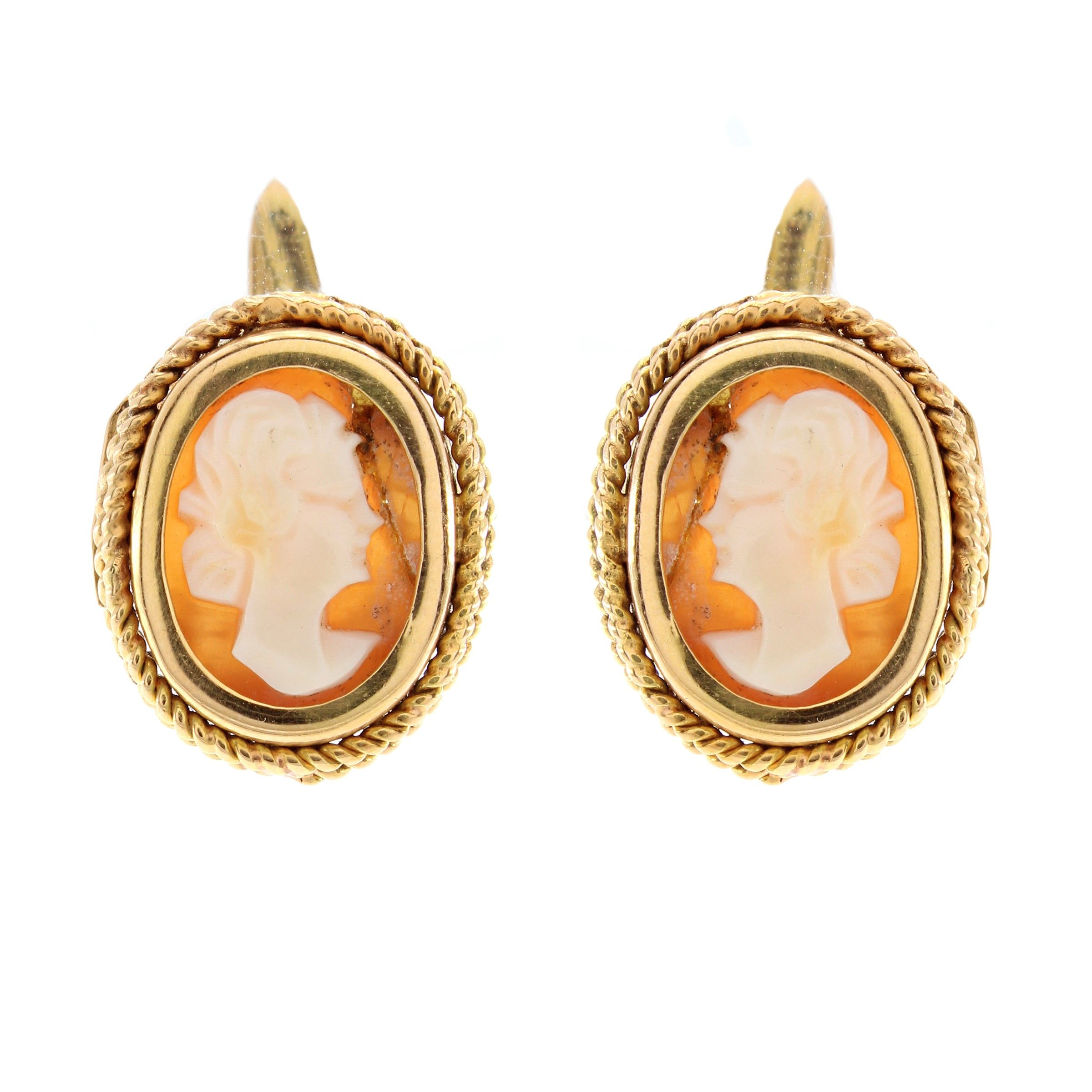 Orecchini a monachina in oro giallo 18kt e cammei incisi
