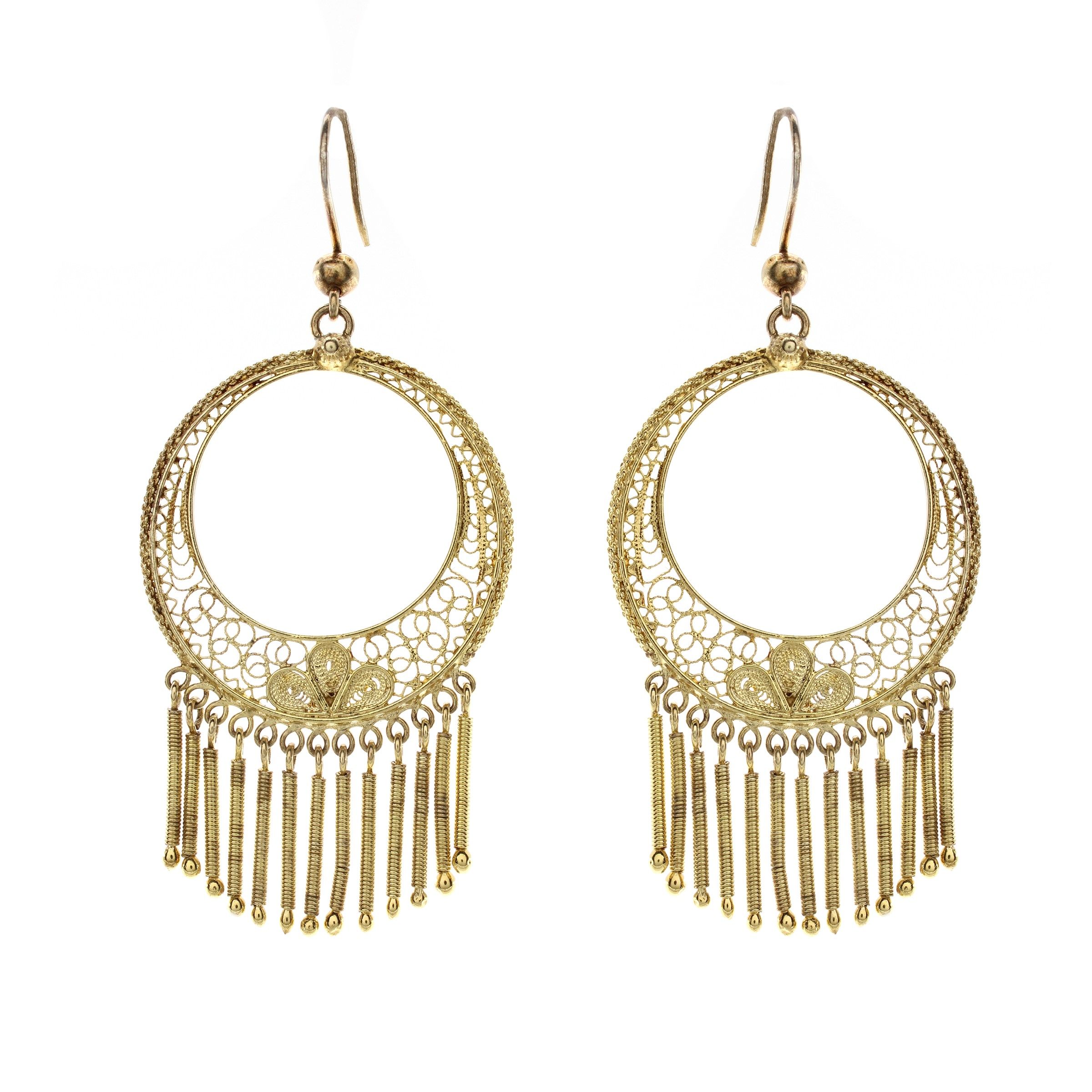 Orecchini pendenti in filigrana d'argento dorato lavorato a mano