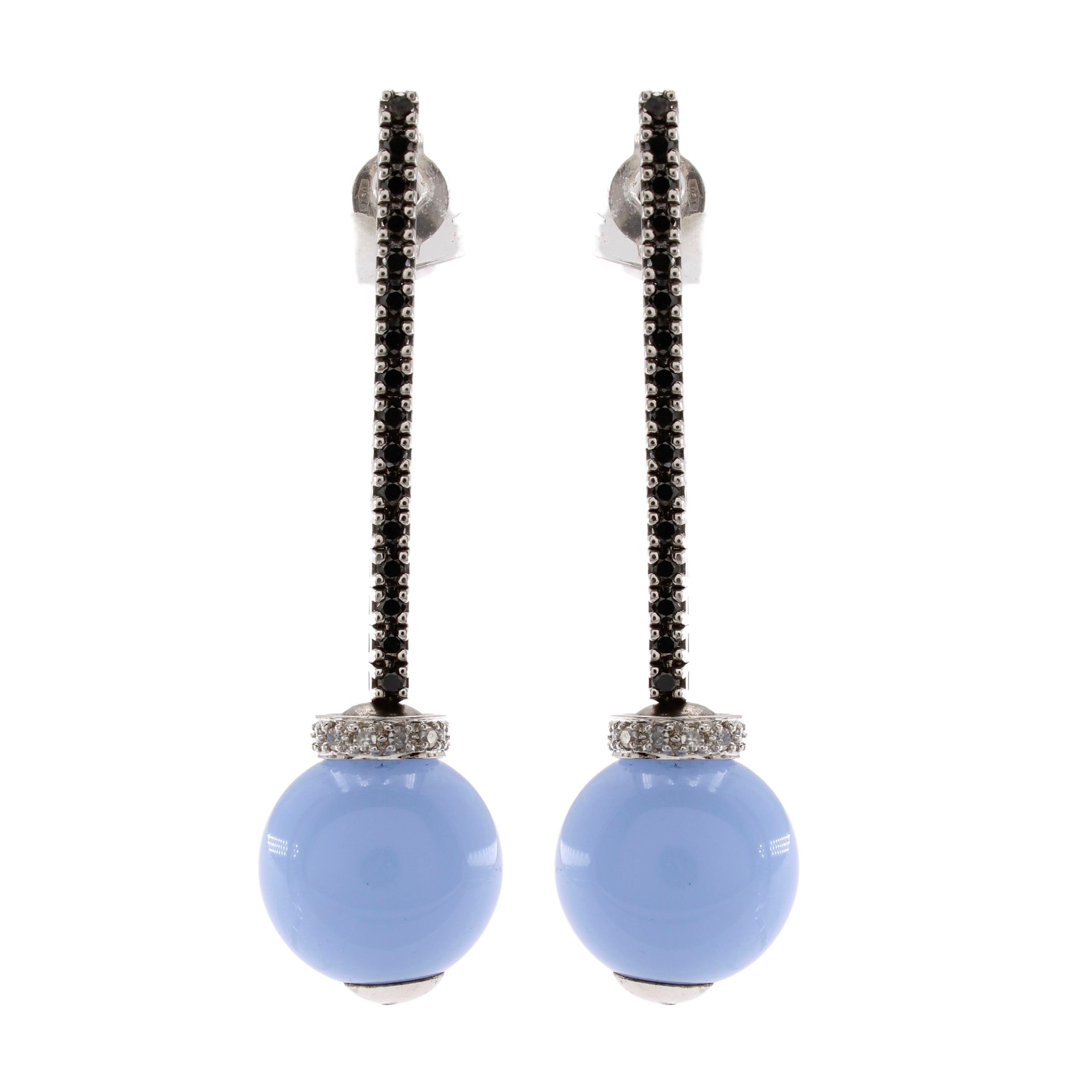 Orecchini pendenti in oro bianco 18kt, diamanti neri e bianchi
