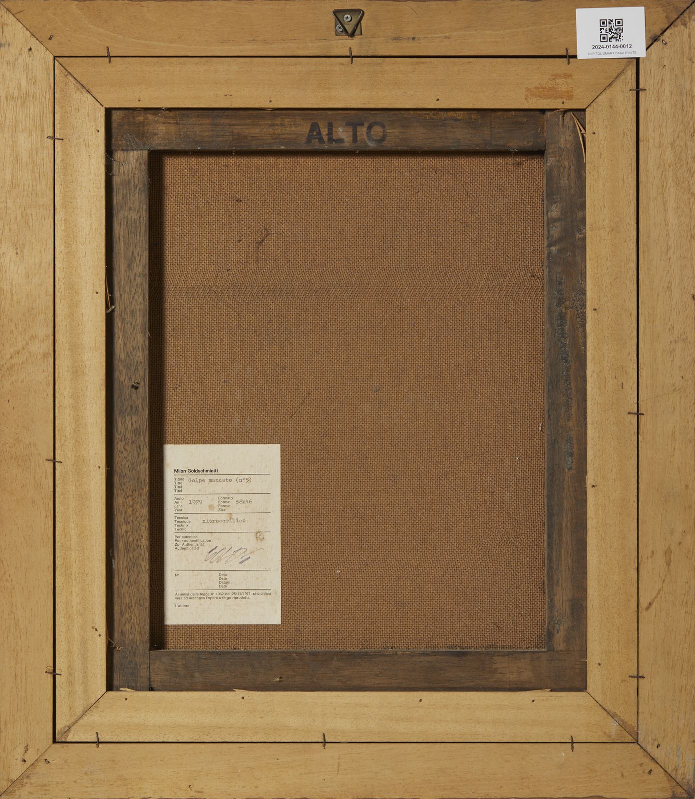 sul retro: etichetta firmata.