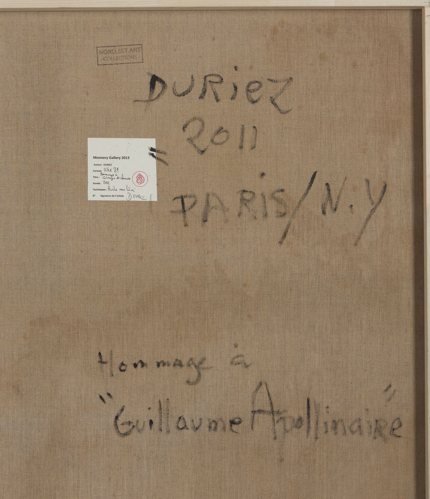 sul retro: firma, data, titolo ed etichetta Galleria Monnery, 2013.