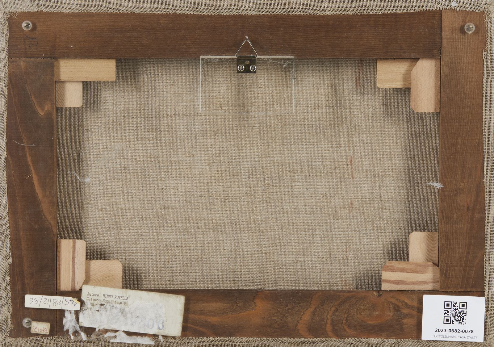 firma e data.Entro teca in plexiglass. L'opera è corredata dall'archiviazione della Fondazione Mimmo Rotella, Milano. Entro teca in plexiglass.