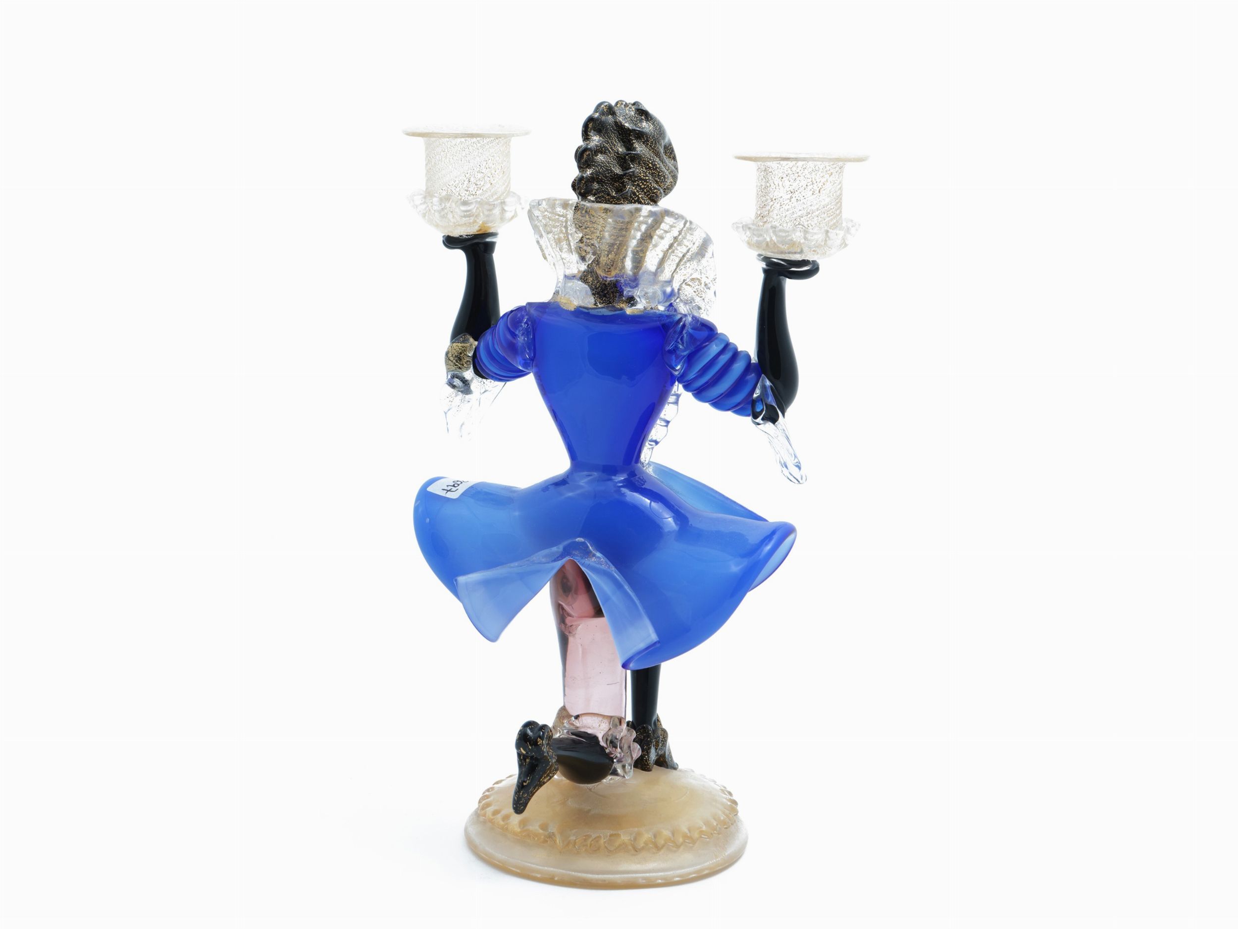 XX secolo realizzato come un moro in abito nei toni del blu e dell'ametista, con inclusioni dorate, due bracci portacandele