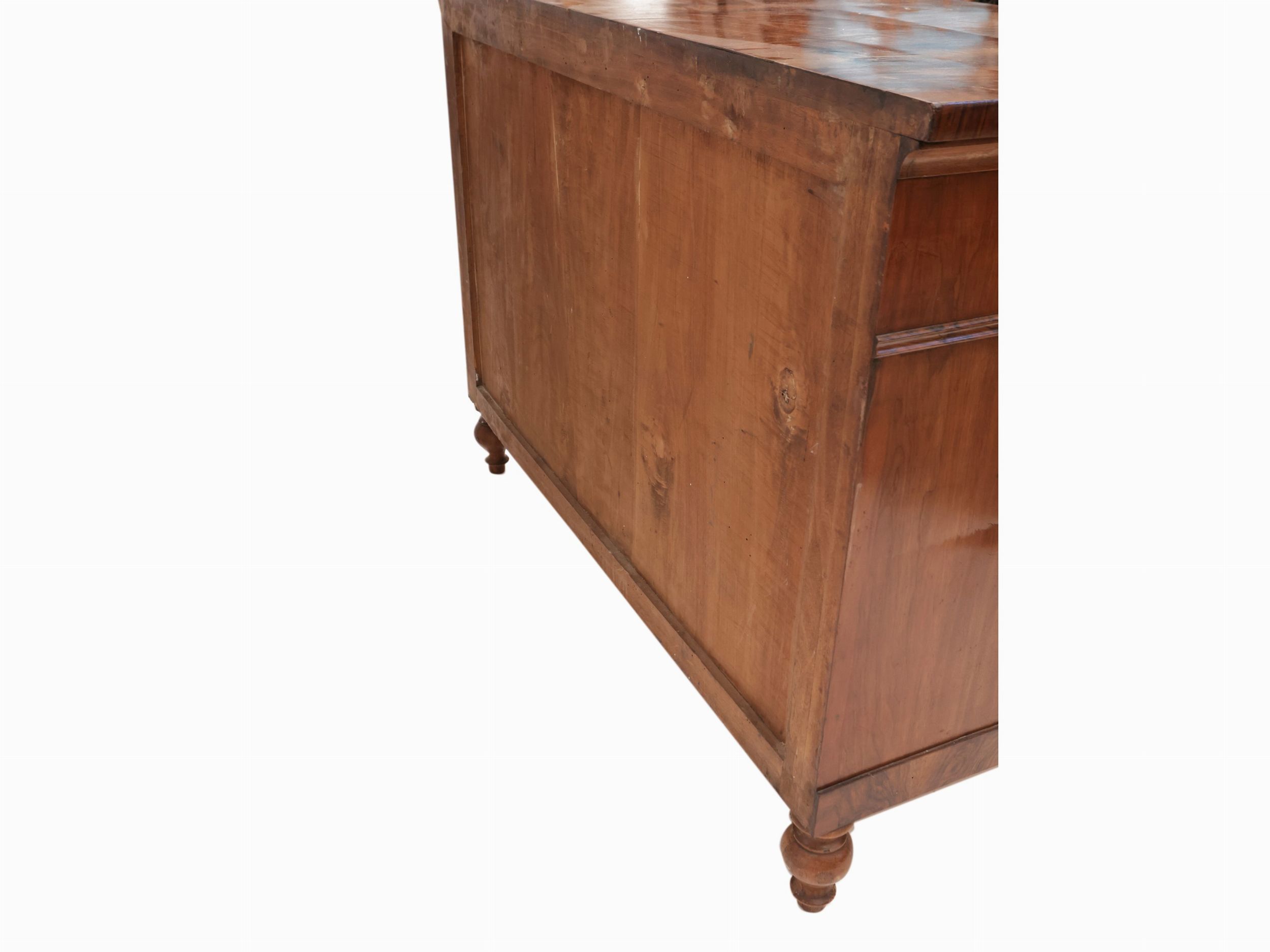 XIX secolo tre cassetti sul fronte dritto, piedi a trottola, lievi difetti