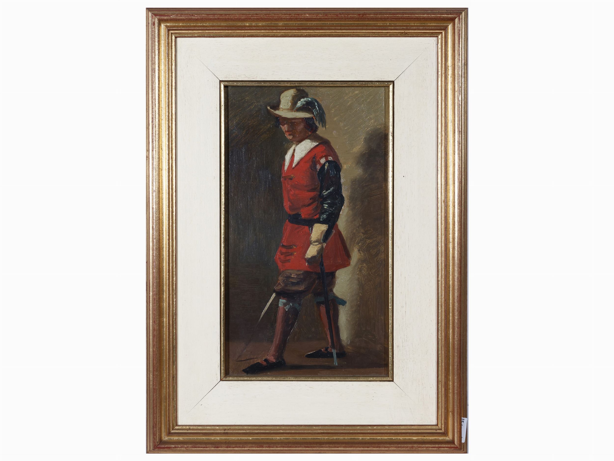 fine del XIX secolo tre dipinti ad olio su carta applicata a cartoncino, in cornice