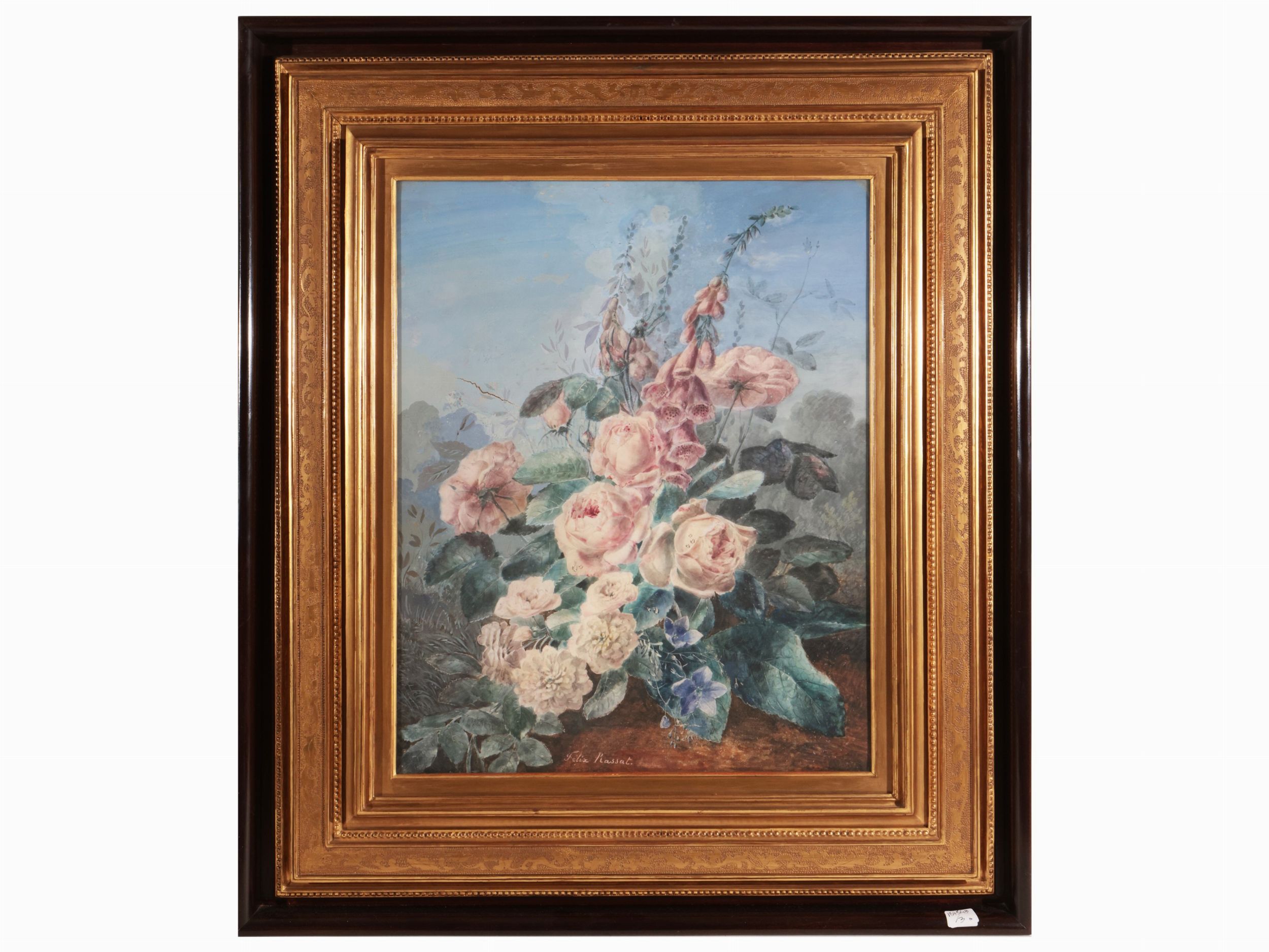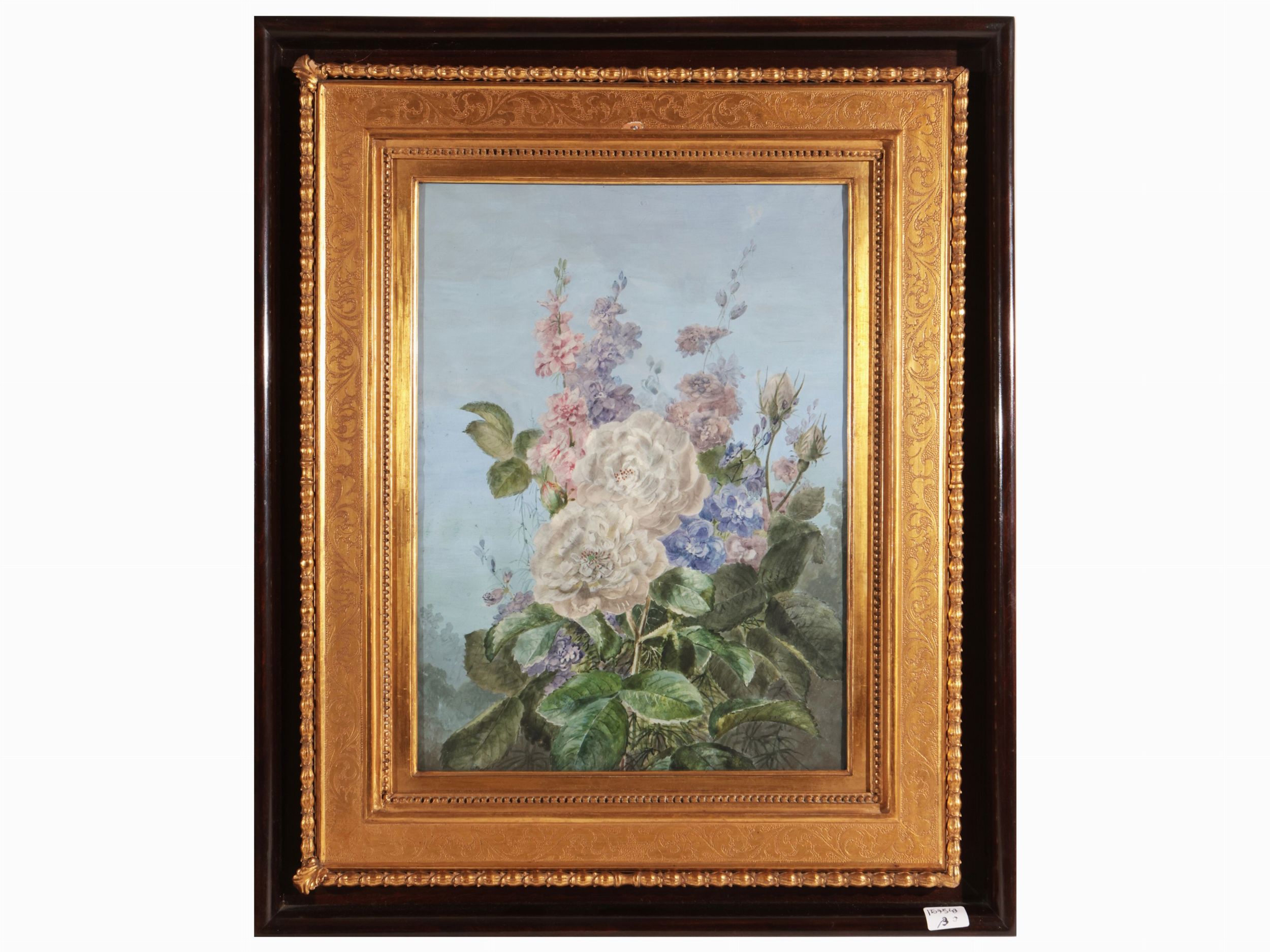 XIX secolo tre acquerelli su carta, due firmati, in cornice