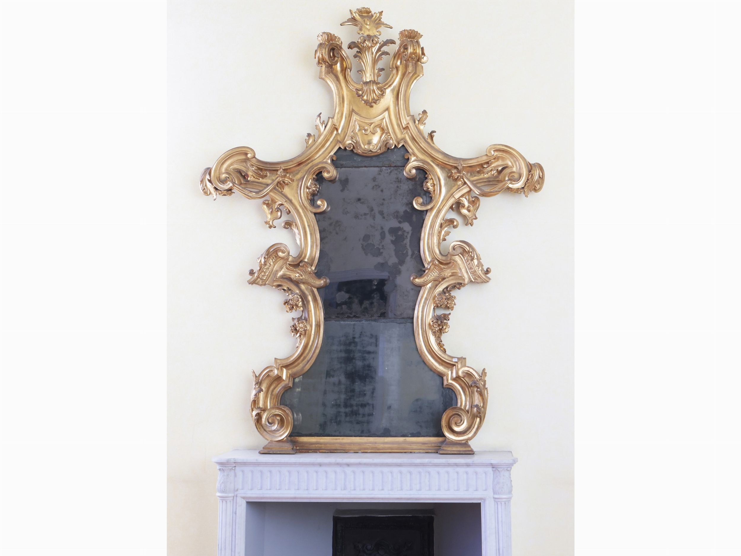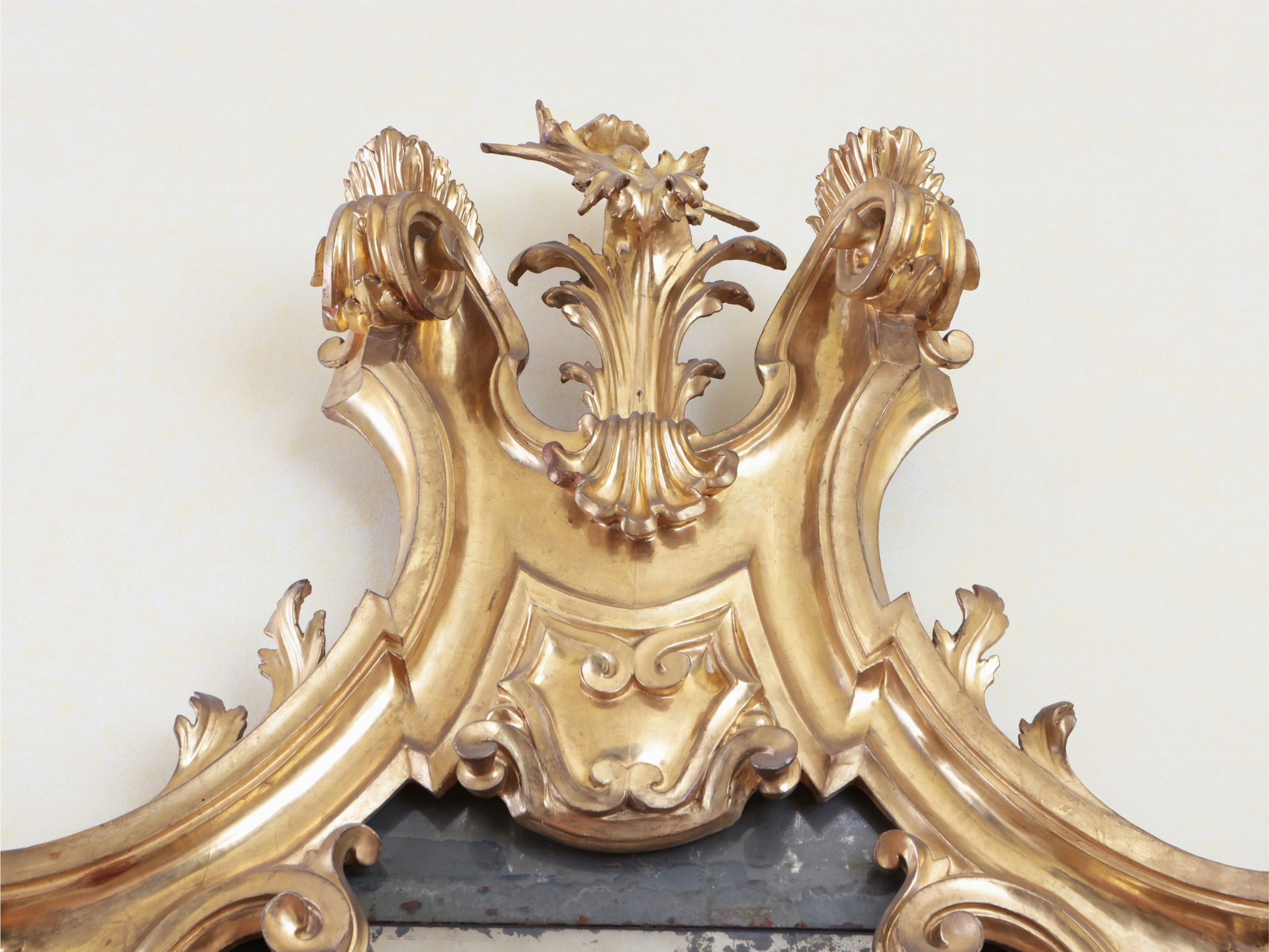 XIX secolo specchio coevo, intagliata con volute, girali e motivi floreali
