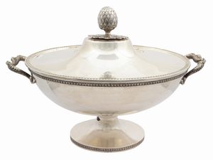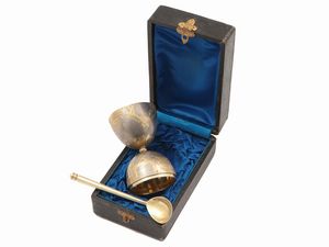 gr 80, h cm 8,5 finemente cesellato con paesaggio di campagna con case e alberi, dettagli vermeil, interno interamente [..]