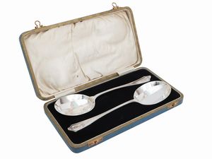 gr 80 (7) completi di pinza per zollette, manico traforato a formare tralci sinuosi, entro cofanetto rivestito [..]