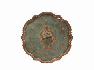 cm 90x74 XVII/XVIII secolo di forma rettangolare, cornice intagliata con motivo vegetale e cimasa centrata con [..]