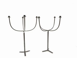 Coppia di grandi candelieri in ferro da terrazzo o giardino