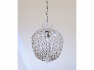 Lampadario a paniere in metallo e vetro