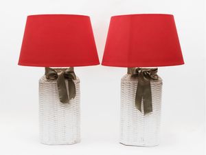 Coppia di lumi da tavolo in ceramica smaltata