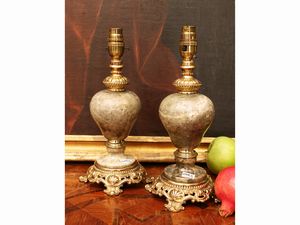 Coppia di lumi da tavolo in marmo e metallo dorato