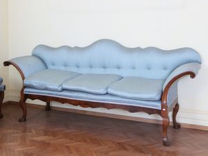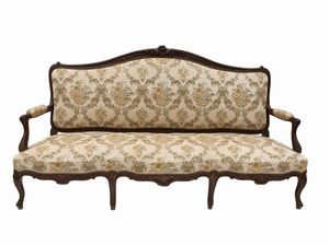 h cm 98x250x60 XVIII secolo braccioli rovesciati desinenti a ricciolo, piedi anteriori lievemente mossi, rivestito [..]