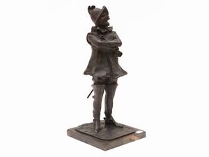 esclusa la base h cm 39,5x14x17 XX secolo scultura in bronzo, firma illeggibile, su base in marmo, alcuni difetti [..]