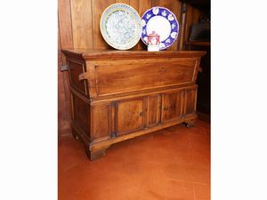 h cm 79x120x74 XIX secolo piano da alzarsi a celare vano per conservare le farine, due sportelli con cornici [..]