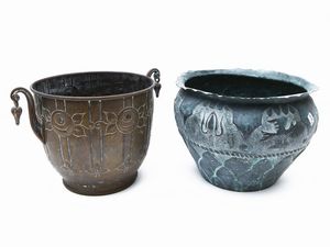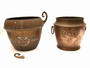 h cm 28, diam cm 24 e cm 30 inizio del XX secolo sbalzati con motivi di gusto Decò, rotture