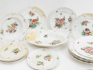 cm 26x35 (21) seconda metà del XIX secolo dipinto in policromia con motivo floreale, completo per sei persone, [..]