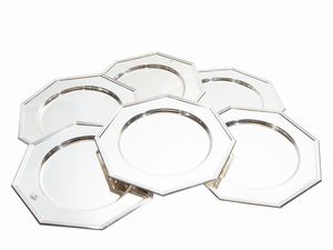 Serie di otto sottopiati in metallo argentato, Brandimarte