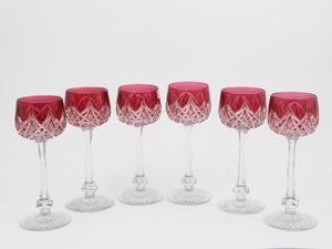 Serie di sei flute arlecchino in cristallo doppio, Saint Louis