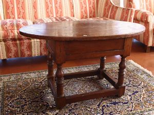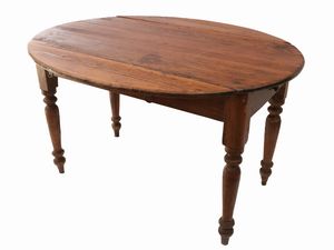 h cm 80x137x109 XIX/XX secolo piano ovale, gambe tornite, lievi difetti
