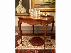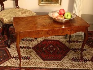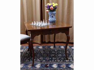 h cm 72x85x68 seconda metà del XVIII secolo piano impiallacciato ed intarsiato con filettatura bicolore, un cassettino [..]