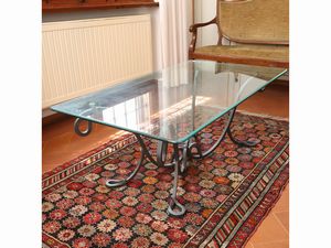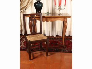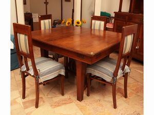 tavolo h cm 80x128-200x110 inizio del XX secolo allungabile, corredato da sei sedie en pendant
