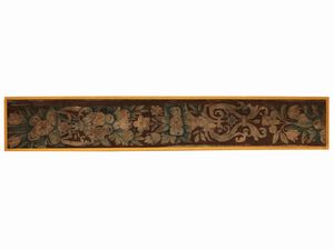 cm 260x40 XVIII secolo decorati con motivo a vaso da cui si dipanano trionfi di fiori e frutti nei toni dell'avorio [..]