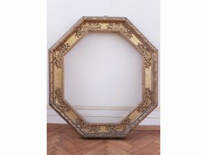 cm 115x101 seconda metà del XIX secolo di forma ottagonale, intagliata con volute e girali, bordo interno a cordonetto, [..]
