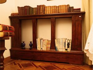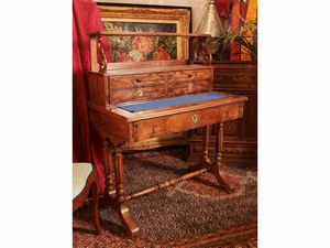 h cm 107x90x49 seconda metà del XIX secolo nella parte superiore alzata con quattro cassettini e vano a giorno, [..]