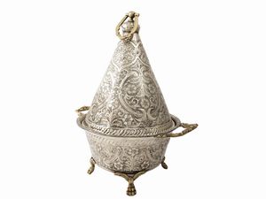teiera h cm 15 (15) decorato con motivo di tralci di rose in argento, prese a foggia di bocciolo di rosa, composto [..]