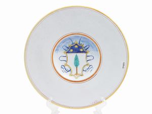 h cm 36,5 metà del XX secolo dipinto con motivo a strisce e spirali nei toni del verde e del marrone su fondo [..]