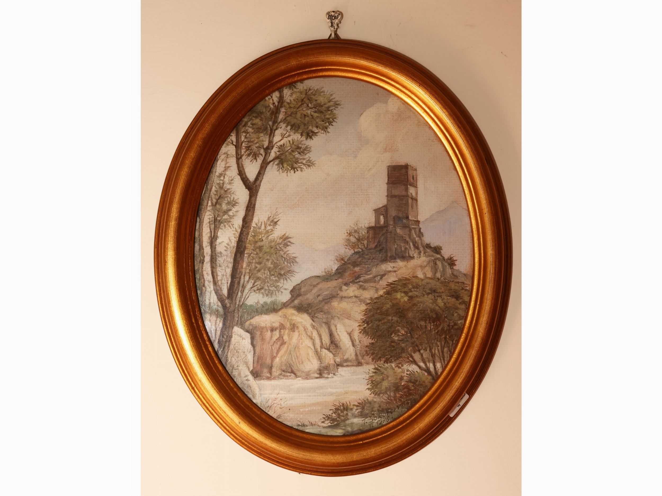 metà del XX secolo tempera su carta in ovale, firmato e datato T. Sokolow 1946, in cornice